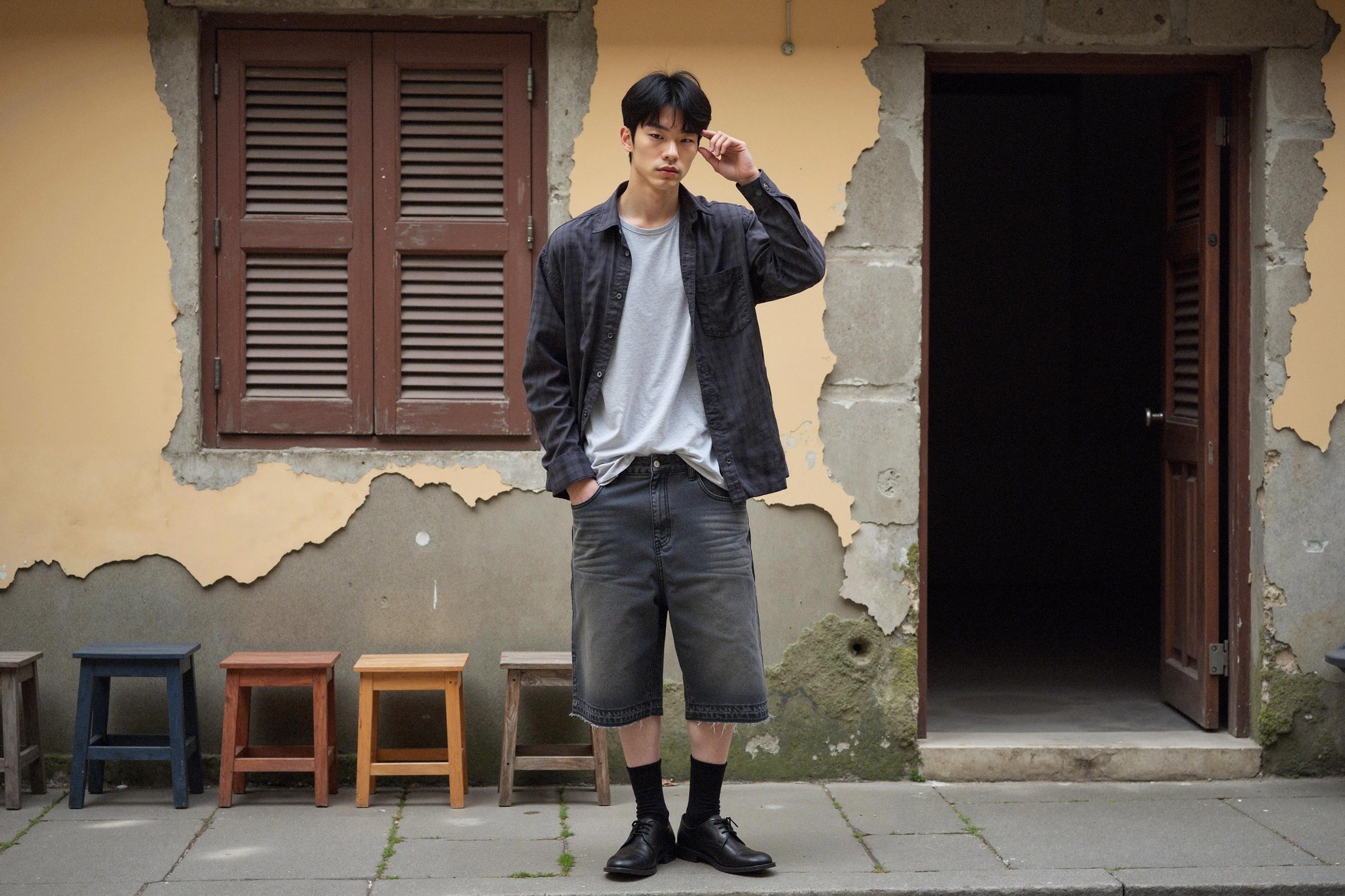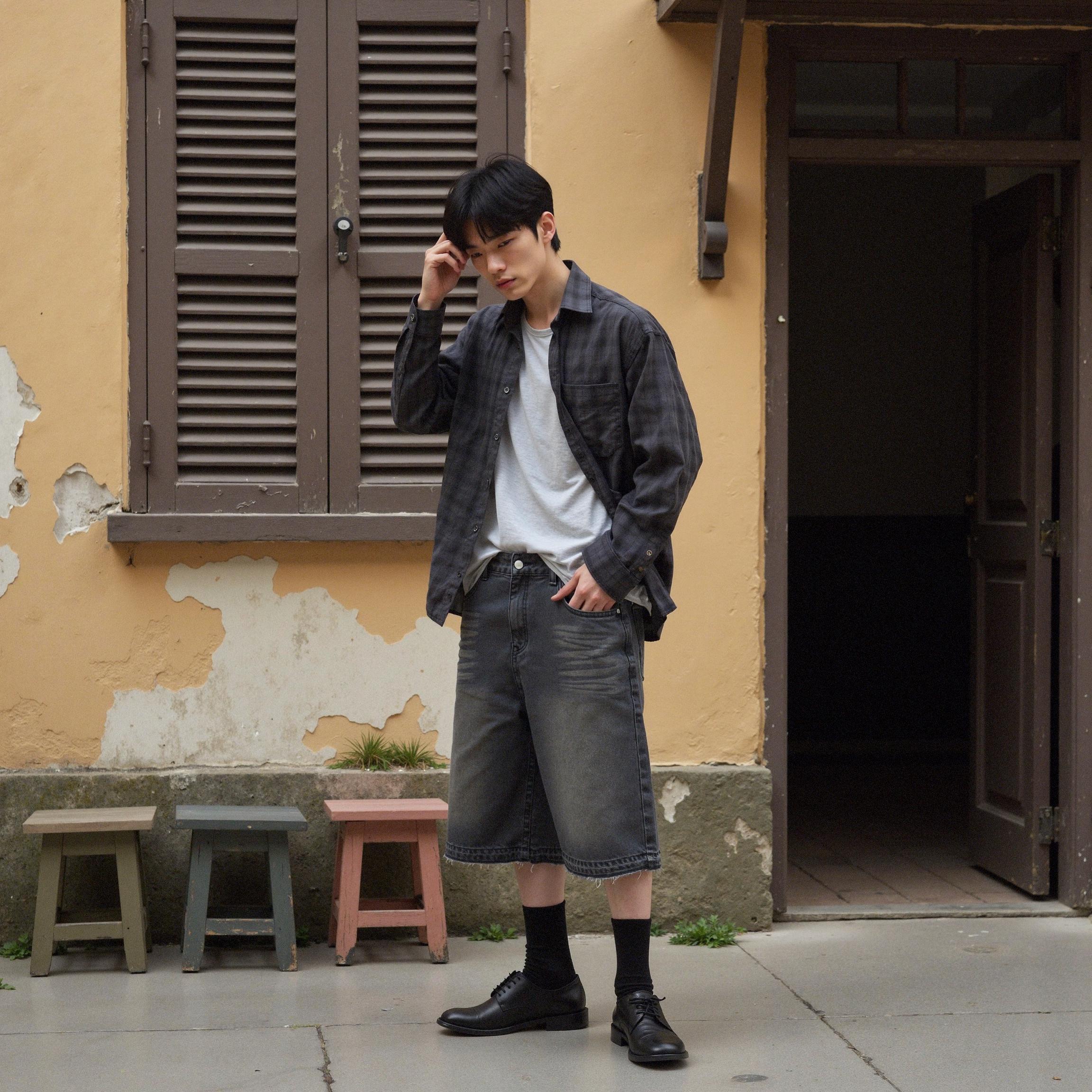 LaonGEN AI로 구현한 맨인스토어 빈티지 링클 체크셔츠 화보